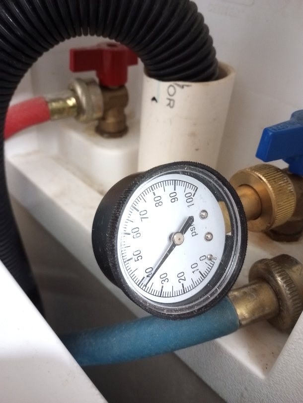 I HAVE TO CHECK MY WATER PRESSURE BECAUSE I HAVE A WATER PRESSURE REGULATOR SET AT 38psi (2.62bar). I got this gauge at Lowe's for about 12 us dollars. It has a garden hose thread. I put it on the cold water tap behind my washing machine. It works great.